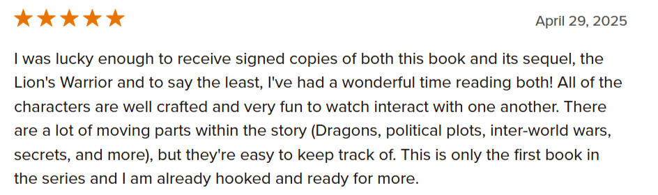 Author of The Lion's Apprentice series; a fantasy story based on friendship, war, and dragons!- Found Family